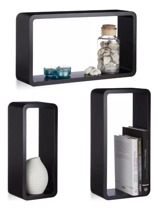 3 Estantes Repisa Flotante Ménsulas Invisibles Rectangular Negro
