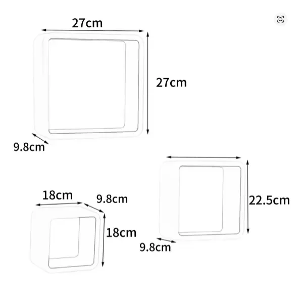Grande: 27cm ancho x 27cm alto x 9,8cm profundidad