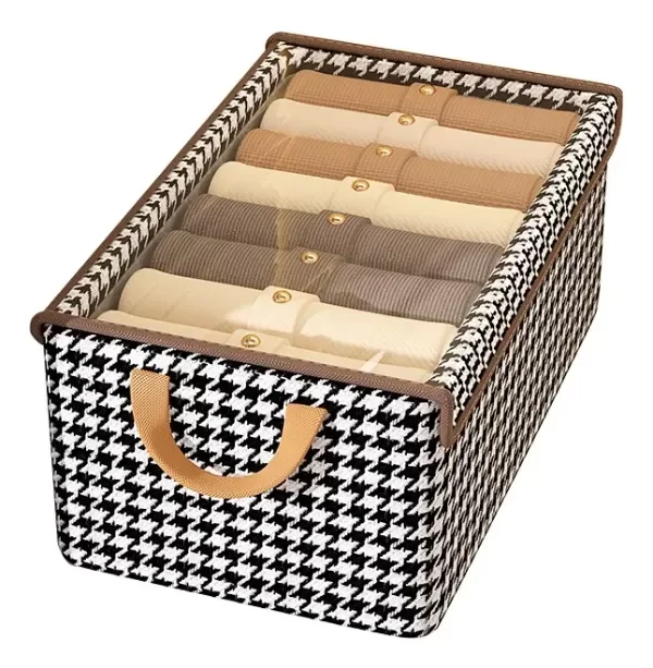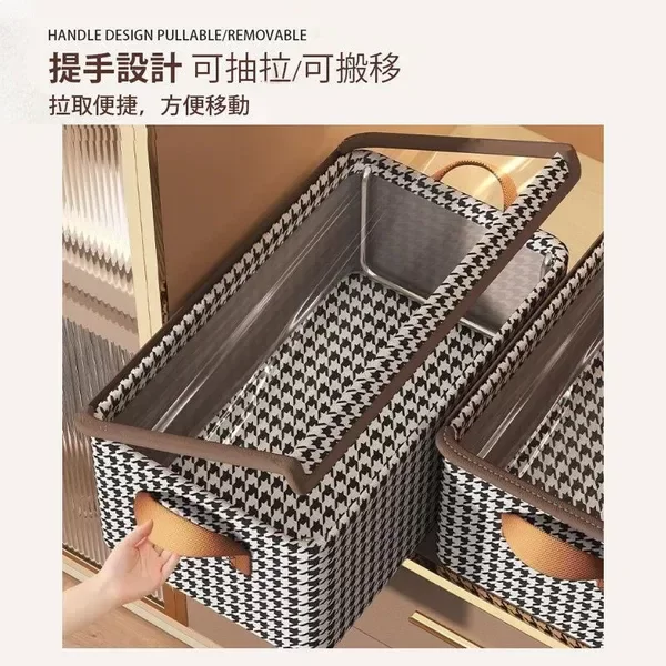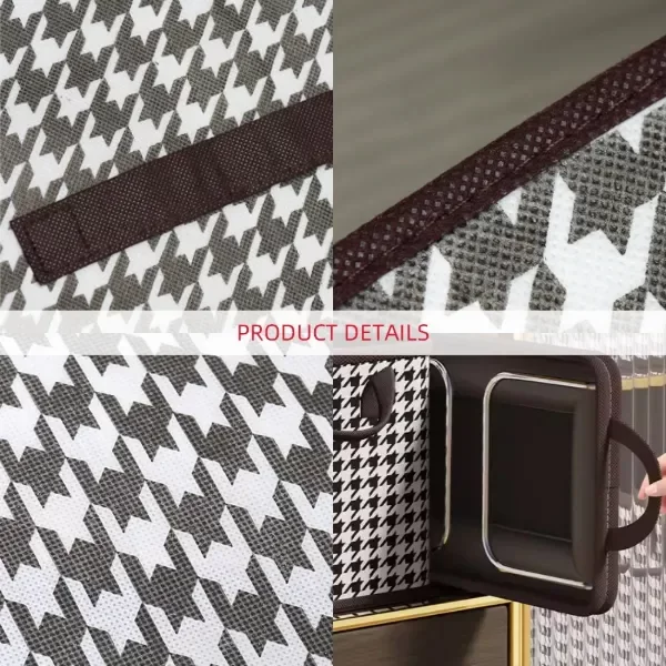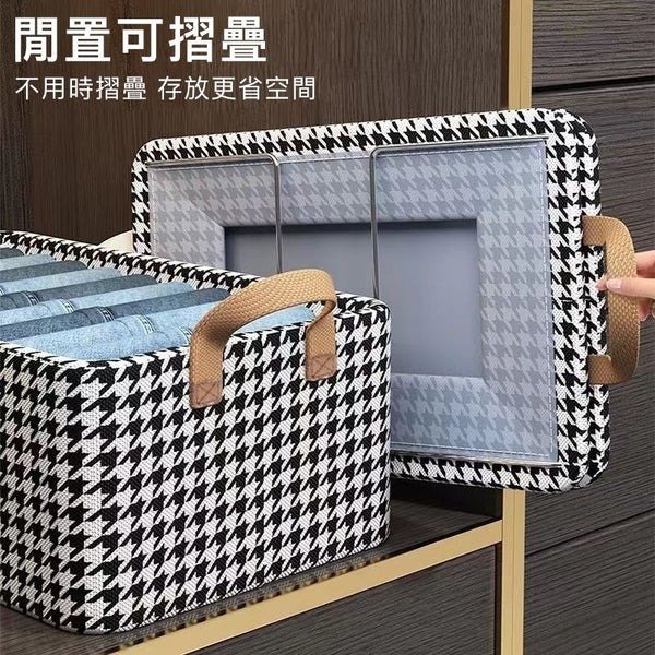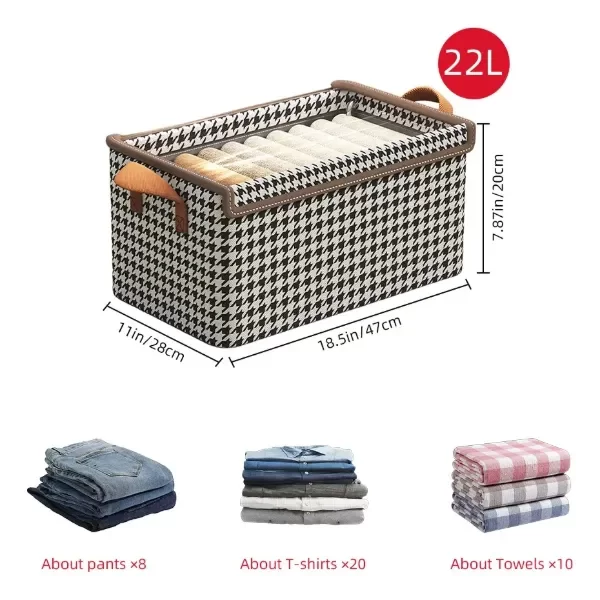 ¡Con tapa y estructura de acero! Caja de almacenamiento antipolvo con diseño de pata de gallo | Estructura de acero grueso, tela de alta calidad, diseño plegable con asa | Caja de almacenamiento de ropa de estilo japonés retro para uso doméstico, ideal para ropa, pantalones, ropa interior y artículos personales. Un organizador de armario con soluciones de almacenamiento en capas.