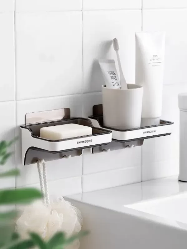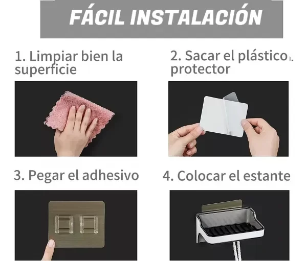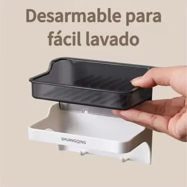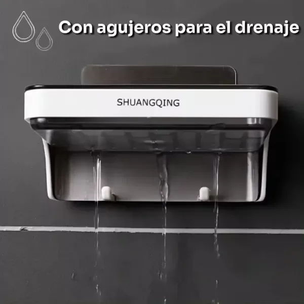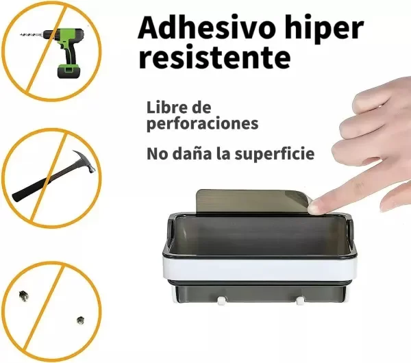 Jabonera Con Ganchos Adhesiva Aguanta 5kg Blanco Negro
