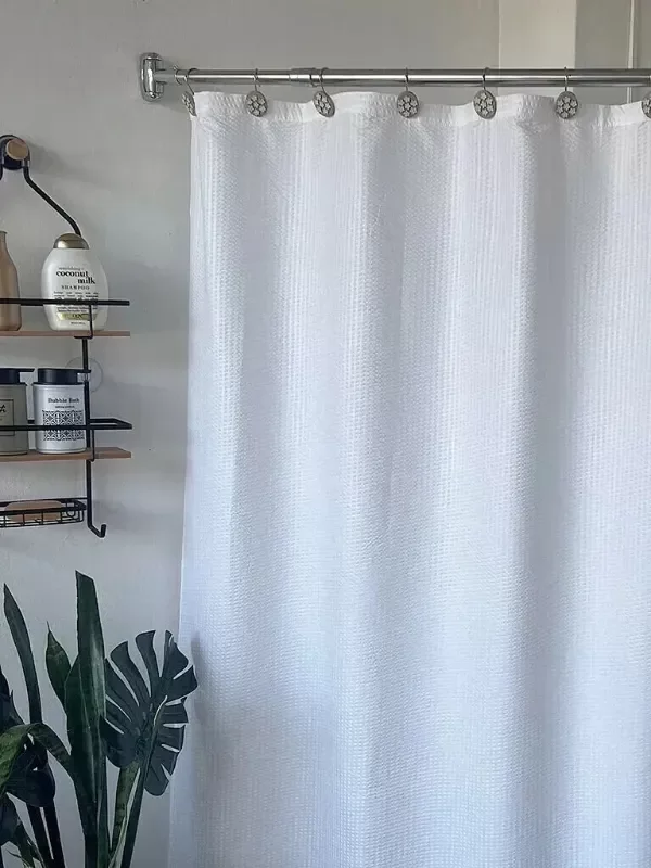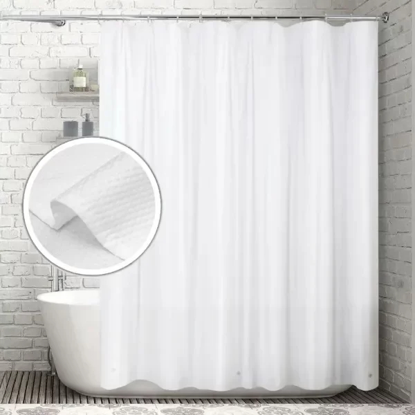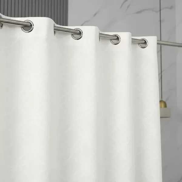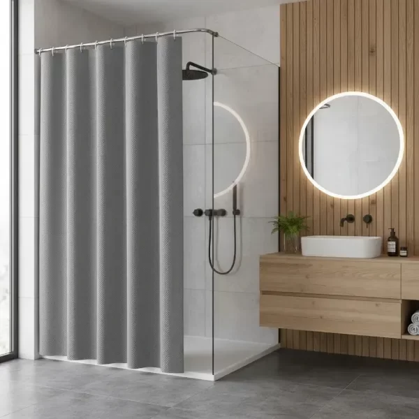 Cortina de baño SABO SMART, fabricada en material de alta calidad. Presenta una superficie con relieve y suave, con un acabado elegante que aporta un estilo moderno y especial al baño. Su diseño de doble capa ayuda a mantener el espacio seco y ordenado, siendo ideal tanto para uso doméstico como para hoteles o uso doméstico.